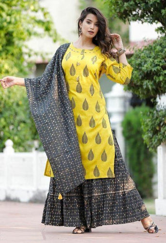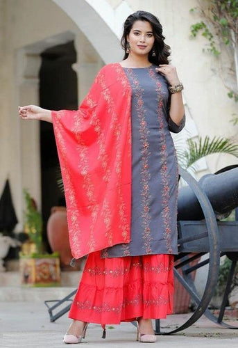Celebrity Style Designer Rayon Kurta with Sharara and Duppata (S To 7XL Size Available)