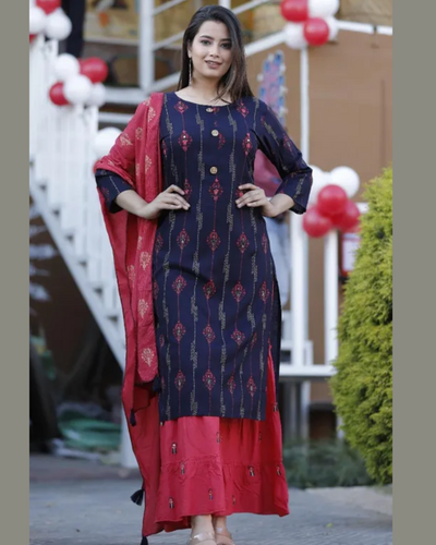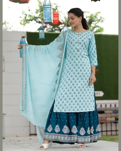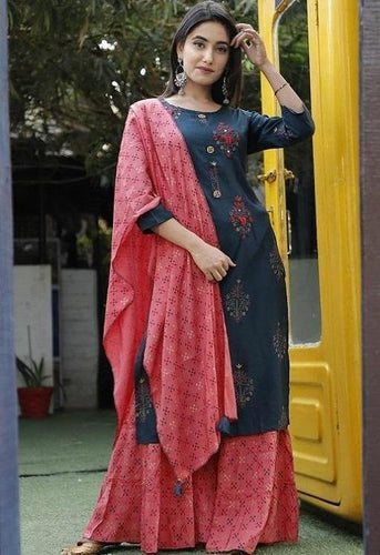 Bollywood Style Rayon Kurta with Sharara and Duppata (S To 7XL Size Available)