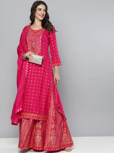 Kala Niketan Designer Floral Embroidered Gotta Patti Kurta with Skirt & With Dupatta - 3 Colors Available
