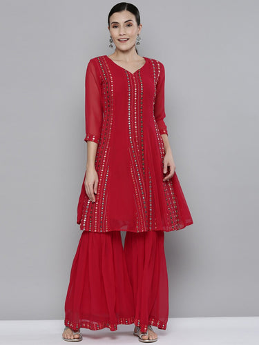 Kala Niketan Bollywood Style Embroidered & Mirror Work Kurta with Sharara