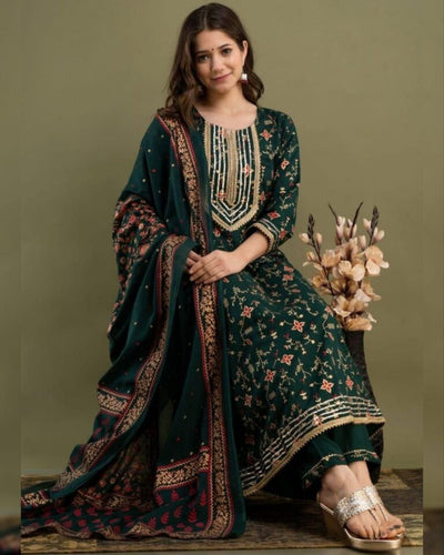 Trendy Look Rayon Partywear Bollywood Kurti Pant With Dupatta For Women