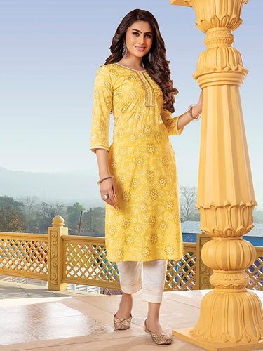 Kala Niketan Bandhani Yellow Printed Stylish Kurti With Cotton Pant