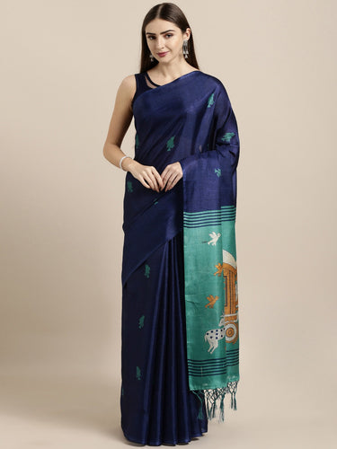 Kala Niketan Navy Blue & Teal Green Art Silk Woven Design Khadi Saree