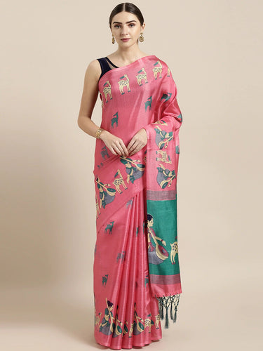 Kala Niketan Pink Silk Blend Printed Khadi Saree