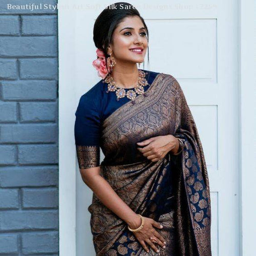 Kala Niketan Navy Blue Color Beautiful Stylish Art Soft Silk Designer Saree