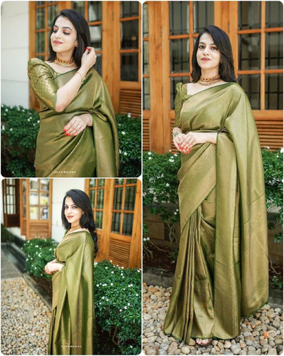 Kala Niketan Lekha Archaic Traditional Kanchi Soft Silk Sari With Attached Blouse