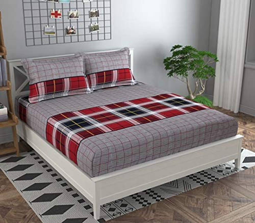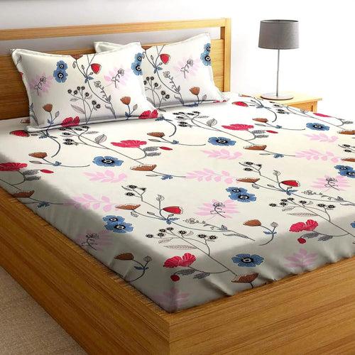 Premium Elastic Fitted Double Bedsheet with 2 Pillow Covers (Fits Any Beds & Mattresses)