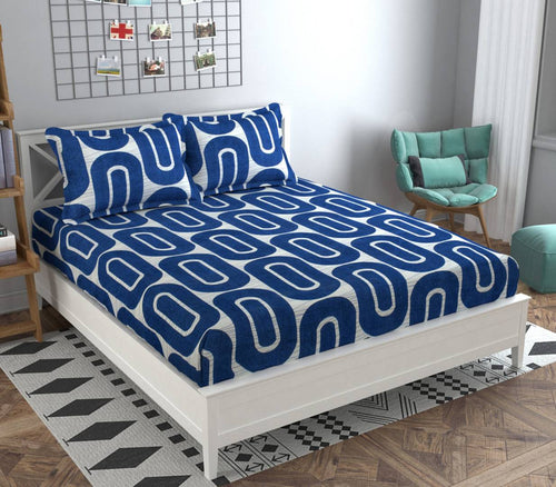 Premium Elastic Fitted Queen Size Double Bedsheet with 2 Pillow Covers