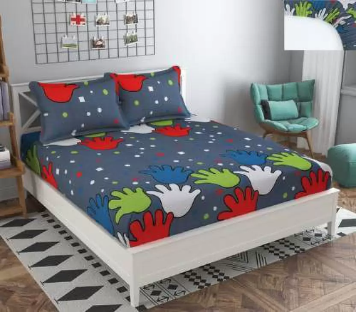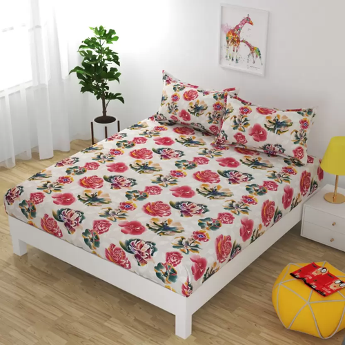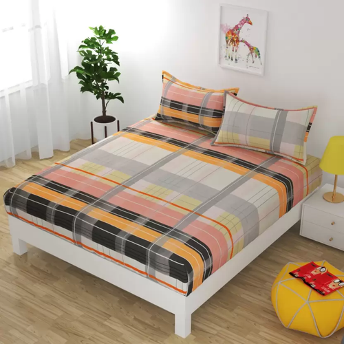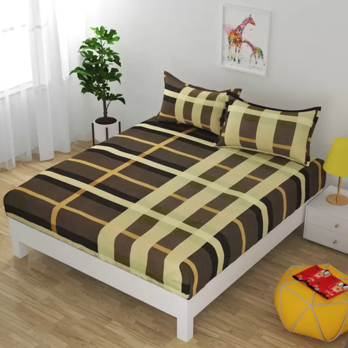 Premium Elastic Fitted Double Bedsheet with 2 Pillow Covers (Fits Any Beds & Mattresses)