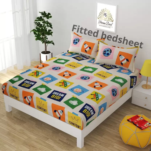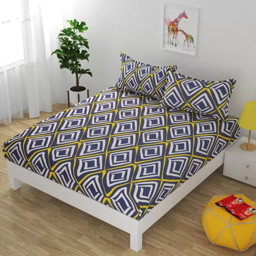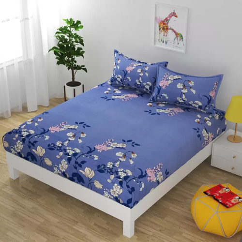 Premium Elastic Fitted Double Bedsheet with 2 Pillow Covers