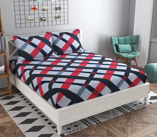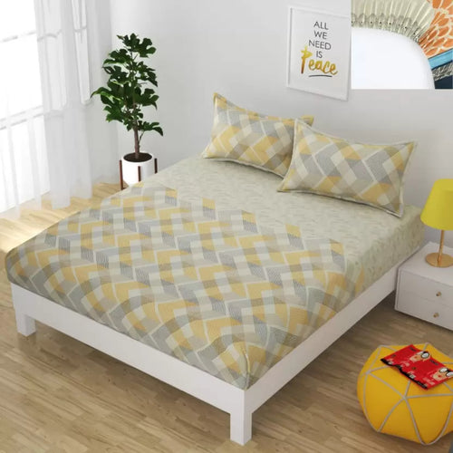 Premium Elastic Fitted Queen Size Double Bedsheet with 2 Pillow Covers