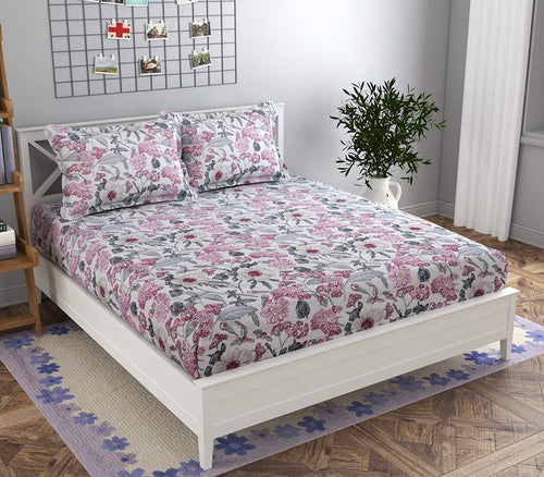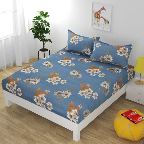 Premium Elastic Fitted Double Bedsheet with 2 Pillow Covers (Fits Any Beds & Mattresses)
